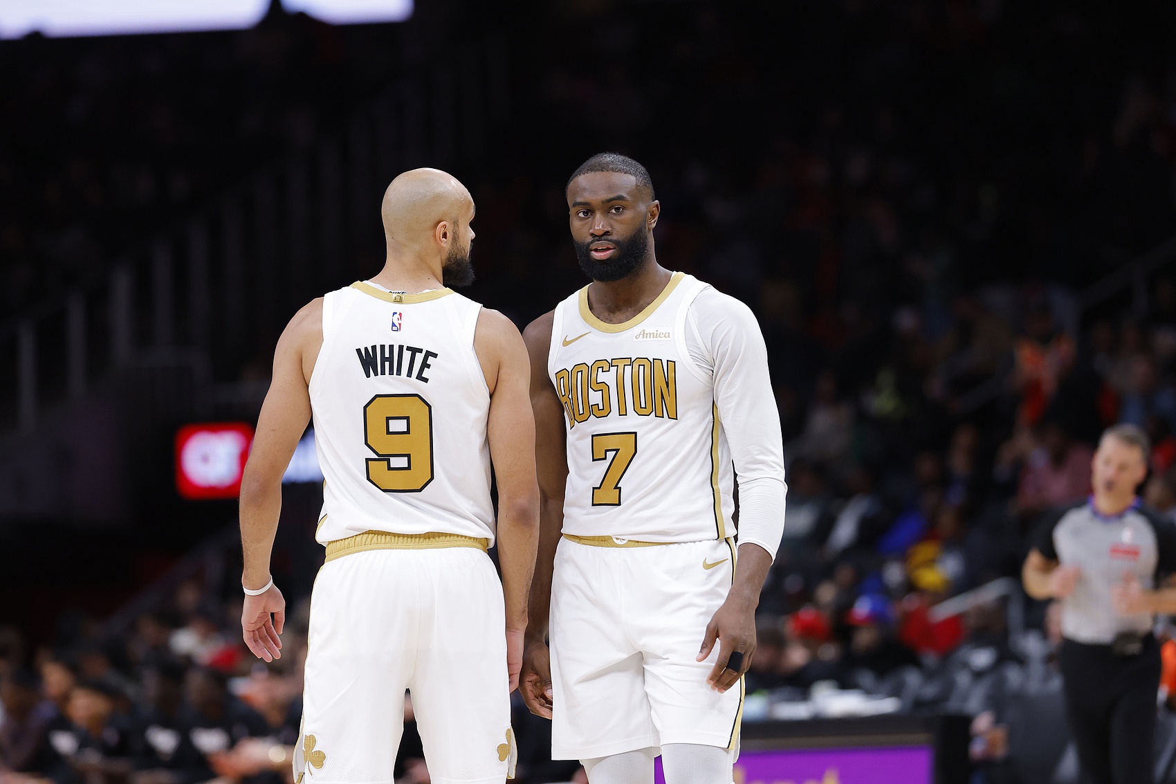 谈及队友杰伦·布朗上半场因不满裁判判罚被驱逐,怀特说道:“第一个技犯确实没得说,但诚实地讲,第二个我觉得纯属扯淡。这本来就是充满激情的高强度比赛。他整个赛季都为球队付出这么多,你不能在这种关键比赛里把他罚出去。”